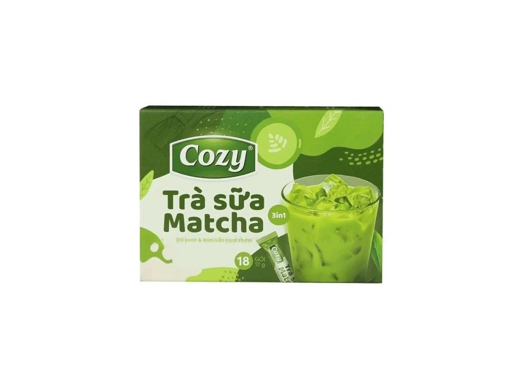 Mengsel voor de bereiding van een Japanse groene theedrank met melk en suiker.