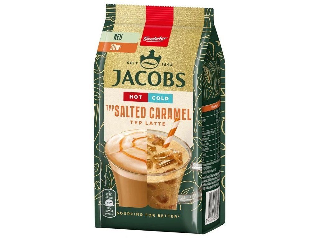 Verwen jezelf met de perfecte combinatie van smaken met Jacobs Hot&Cold Salted Caramel instantkoffie. Deze unieke melange verbergt een delicate harmonie van volle koffiesmaak en de populaire zoete en zoute karamel. Maak van elk kopje een onweerstaanbare ervaring met een rijk, fluweelzacht schuim en een zoet aroma dat doet denken aan een luxe dessert. En het beste van alles? Je kunt er optimaal van genieten , zowel warm als koud , precies zoals je op dat moment zin hebt.