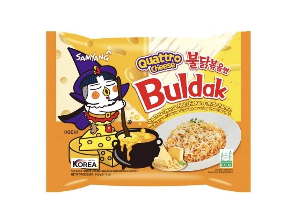 Bereid je voor op een explosie aan smaken! Deze pittige kipnoedels combineren de legendarische pittigheid van Buldak-saus met de luxueuze romigheid van vier soorten kaas: mozzarella, cheddar, gouda en camembert . Deze unieke combinatie tempert de scherpte en creëert een rijke, romige saus die elke veerkrachtige noedel perfect omhult. Een absolute aanrader voor alle kaasliefhebbers en liefhebbers van pittig eten.
