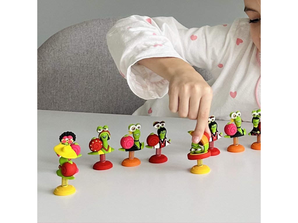 Maak kennis met Bob Snail Play Music Fest : een gloednieuwe collectie leuk speelgoed met veermechanisme. Raak ze aan en zie ze dansen!